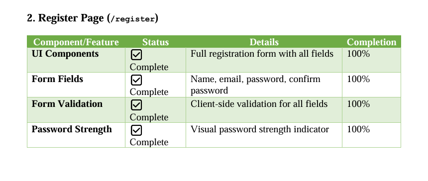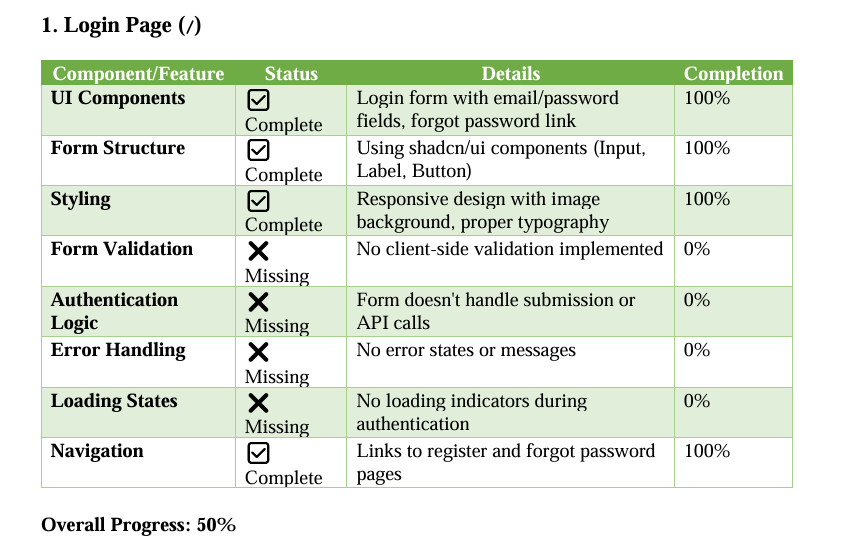 Progress page